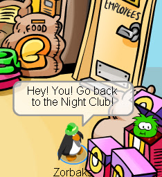 Green puffle!? What are you doing here..? In Night Club no one gives you food?
